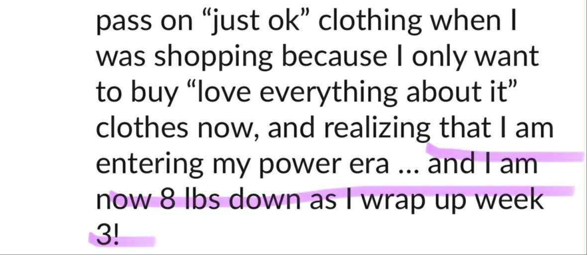 3 part training on why you can't stay consistent (& the #1 way to stay consistent today), how to navigate cravings and break free from the "tomorrow" cycle when you go off track and how to enjoy the food you LOVE & lose your weight without ruining your results. This is your weight loss jumpstart.